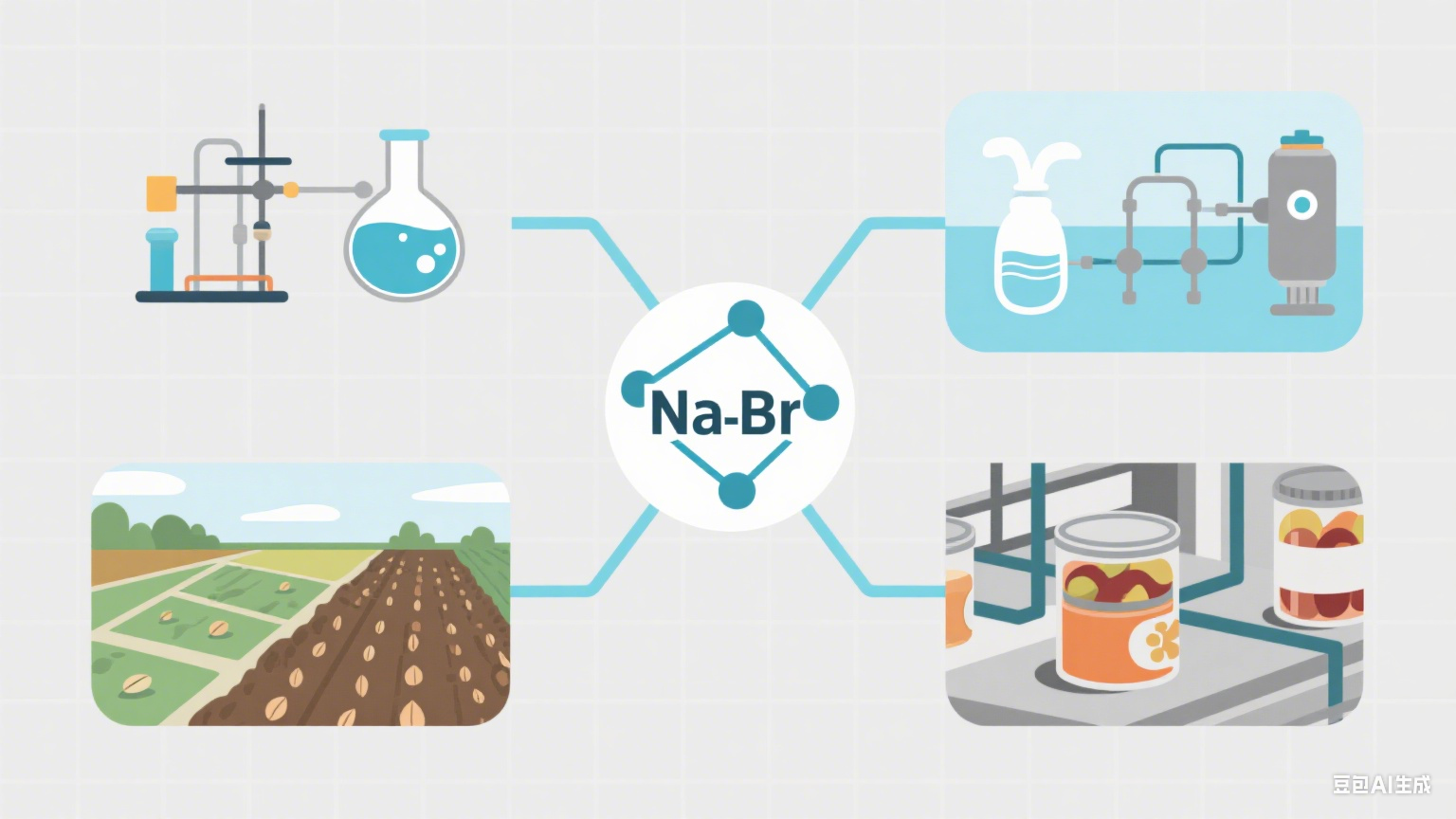 溴化鈉在農(nóng)業(yè)領(lǐng)域的應(yīng)用相對(duì)較為獨(dú)特,主要體現(xiàn)在改良土壤和種子處理方面。在一些鹽堿地或缺水地區(qū),溴化鈉能夠幫助調(diào)節(jié)土壤中的鹽分含量,改善土壤的滲透性,從而提升農(nóng)作物的生長環(huán)境。尤其是在干旱或鹽堿地的農(nóng)田中,溴化鈉的使用能夠有效降低土壤的鹽堿度,促進(jìn)植物的健康生長。